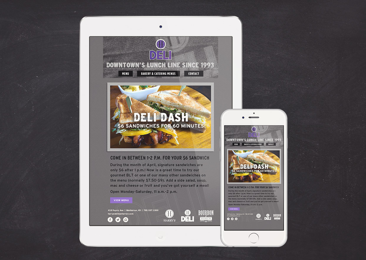 S&N Design re-branded Harry’s DELI, which included a new logo, wall menu graphics, menu design, a website and monthly email blasts. We purposefully incorporated key graphic elements to ensure it had a similar look and feel to its sister restaurant, Harry’s.